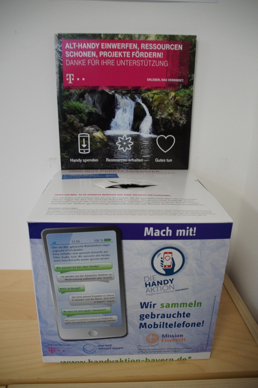 Die HANDYAKTION Bayern ist eine Kooperation von Mission Eine Welt (Evang.-Luth. Kirche Bayern), Eine Welt Netzwerk Bayern e.V., Telekom Deutschland und Teqcycle Solution GmbH. Nach Abzug der Recyclingkosten kommen ca 70 Cent pro Handy Bildungsprojekten in El Salvador und Liberia sowie in Bayern dem Projekt „Eine Welt- Kita“ zu Gute.