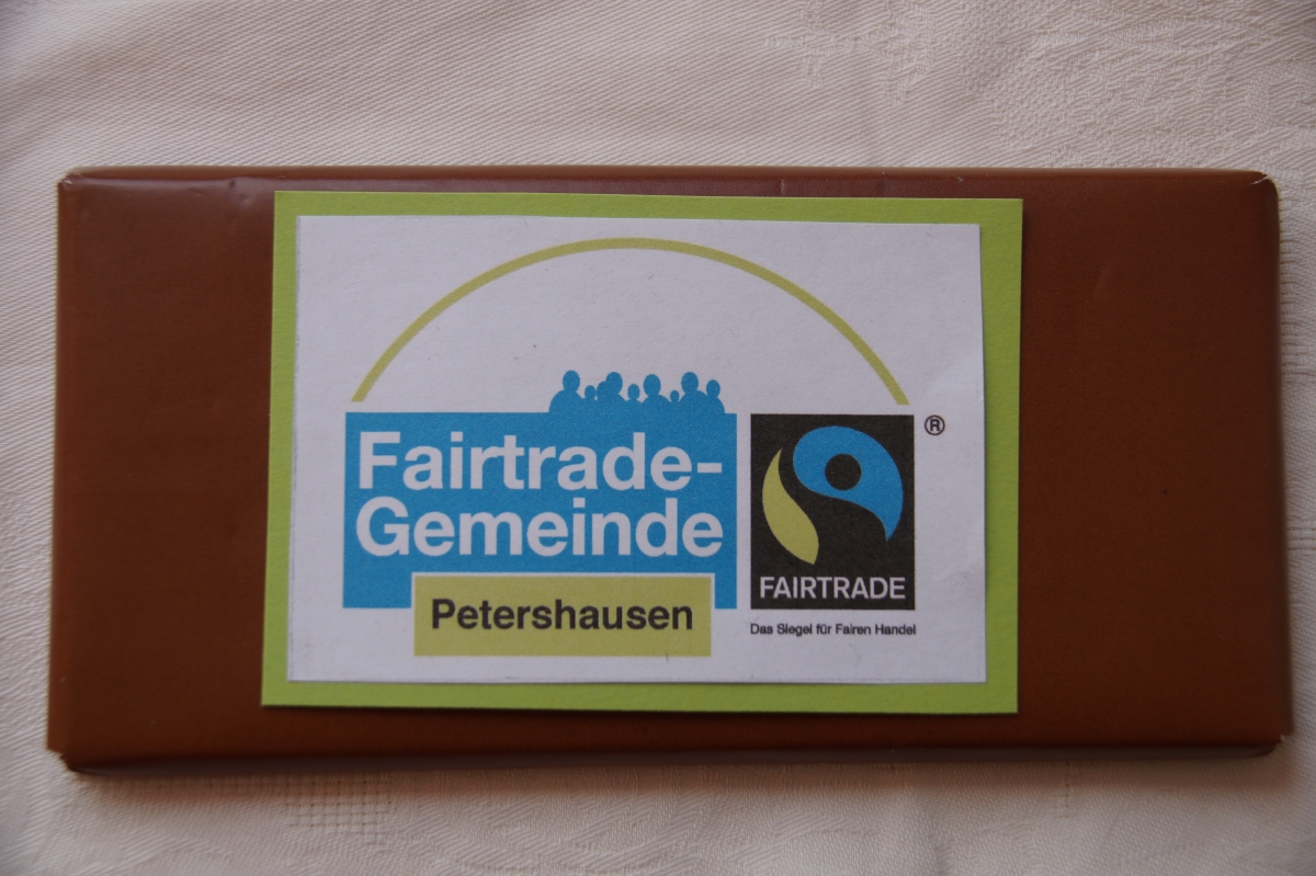 Aktionsschokolade mit Logo der Fairtrade Gemeinde Petershausen