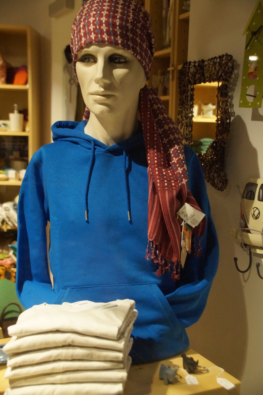 Waren sie im letzten Sommer nur probeweise im Sortiment, bietet der Fairkaufladen ab jetzt dauerhaft T-Shirts, Kapuzenjacken und Jogginghosen an.