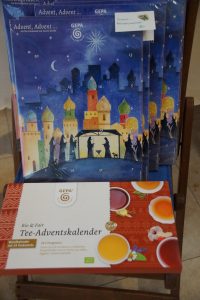 Wer zur Zeit  in den Fairkaufladen kommt, kann schon etliche weihnachtliche Lebensmittel, Adventkalender und ein wenig Kunsthandwerk einkaufen.