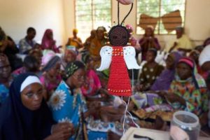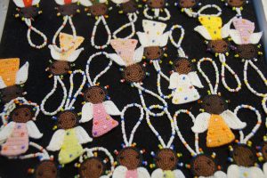 Das Frauenprojekt „Engel für Afrika“ ist ein besonderes Hilfe zur Selbsthilfe-Projekt, das im Großraum Mombasa der Armut von Frauen und ihren Familien entgegenwirkt. Der Verkauf eines Engels garantiert der Häklerin den Kauf von 1/2 kg Maismehl und einem Schulkind ein vitaminreiches Mittagessen. Das feine Häkelgarn wird aus Deutschland importiert, denn in Kenia ist Garn in dieser speziellen Stärke und Farbauswahl nicht erhältlich. Die Perlen hingegen stammen aus Mombasa: Es sind originale Maasai-Beads, wie sie auch von den Maasai für ihren traditionellen Schmuck verwendet werden. Zur Zeit arbeiten 70 Frauen in dem Projekt.
