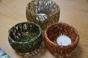 Verschiedene Größen von Teelichthaltern aus Eisen und Glitzer stammen von von Noah’s Ark in Indien.