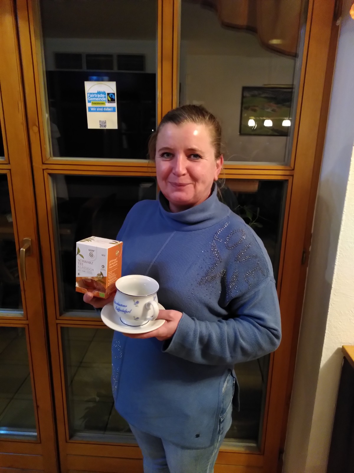 Foto: Miriam von der Sportgaststätte mit Schwarztee und Petershausener Kaffeehaferl/