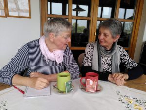 Unsere Ladenmitarbeiterinnen genießen fair gehandelten Tee in der Sportgaststätte Olympia