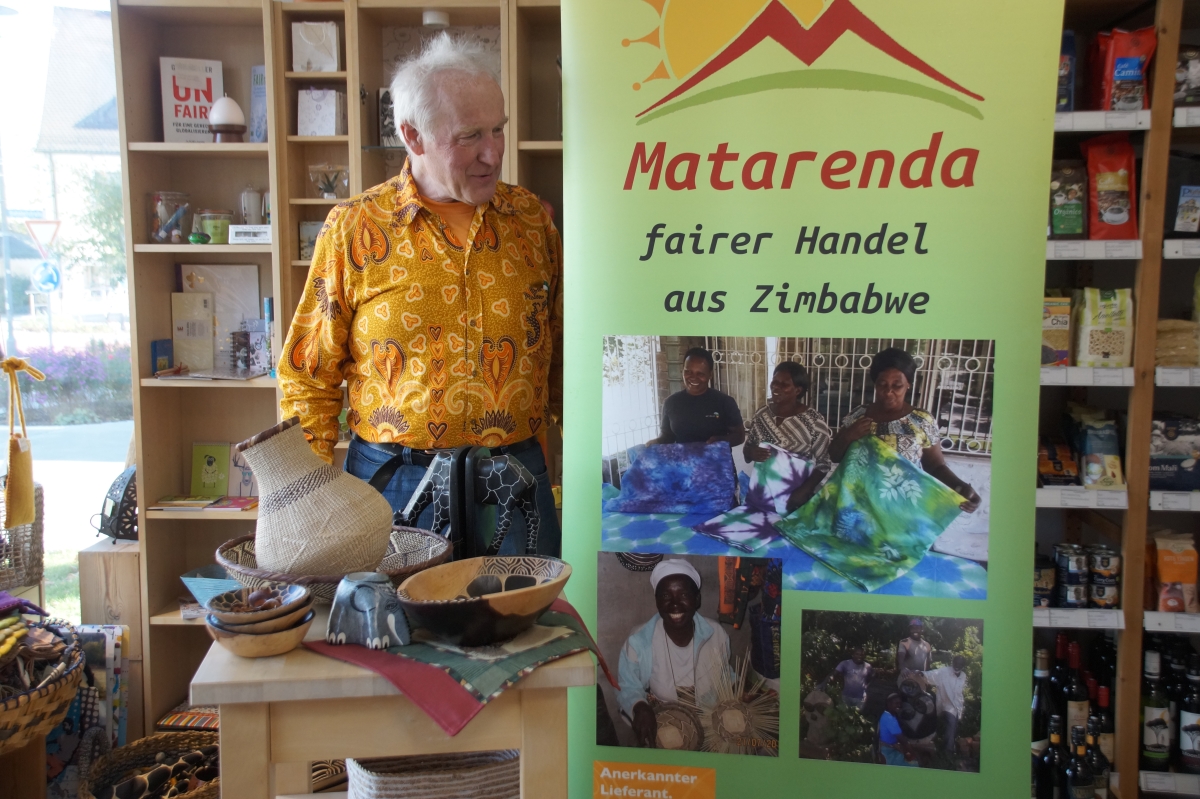 Bei seinem Besuch bayerischer Weltläden Mitte Oktober fuhr Dietmar Kühl zum ersten Mal auch den Fairkaufladen an. Mitgebracht hatte er in seinem Kleintransporter Kunsthandwerk und Textilien aus Zimbabwe.
