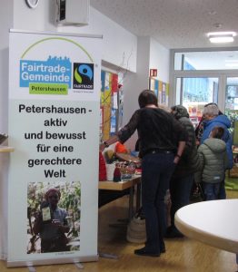 Und für alle, die es immer noch nicht wussten, zeigten ein Rollup und entsprechende Flyer, dass Petershausen Fairtrade-Gemeinde ist.