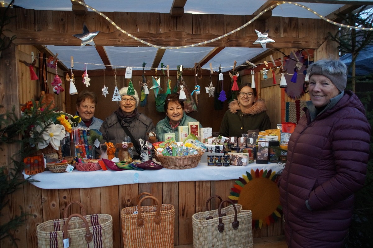 Auch ein Team des Fairkaufladens konnte in einer schönen Holzhütte wieder faire Waren verkaufen. Eine gute Gelegenheit für die Besucher, einen alternativen Weihnachtsbaumschmuck oder Weihnachtsgeschenke zu kaufen.