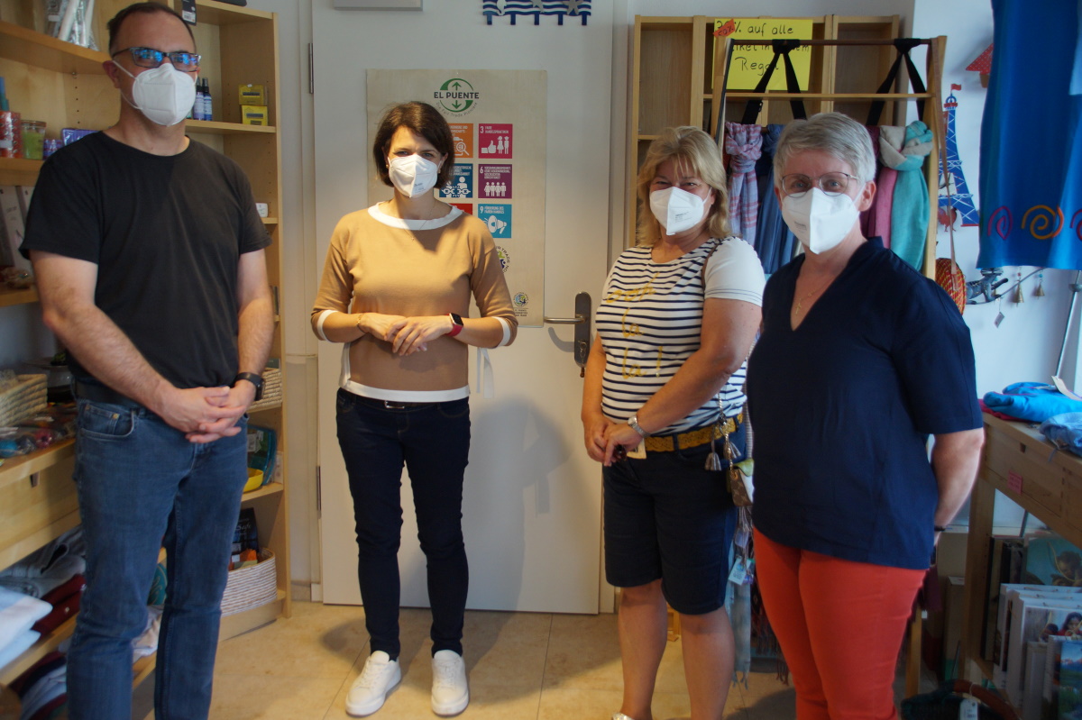 Mitgebracht hatte Hilde Weßner noch die beiden Vorstandsmitglieder Günther Graßl und Kerstin Götz. Und aus alter Verbundenheit zum Fairkaufladen nahm sich auch der Chef der Schreinerei Huber, Benno Huber, Zeit für den Ortstermin. Er ist schon lange Kunde im Fairkaufladen, schenkt beim Tag des Schreiners fairen Kaffee aus und bietet bei Kundengesprächen faire Süßigkeiten an. Zudem hat er schon einige Möbel für den Fairkaufladen hergestellt.