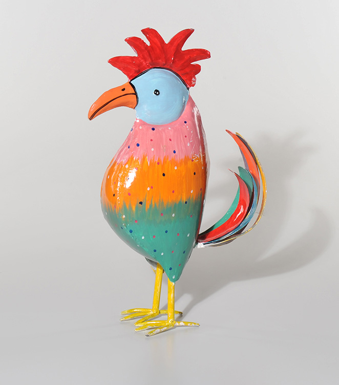 Die Blechhähne stammen von der indischen Organisation Manjeen (Abkürzung für Marginalized Artisans‘ Network & Joint Endeavor) https://www.eza.cc/manjeen