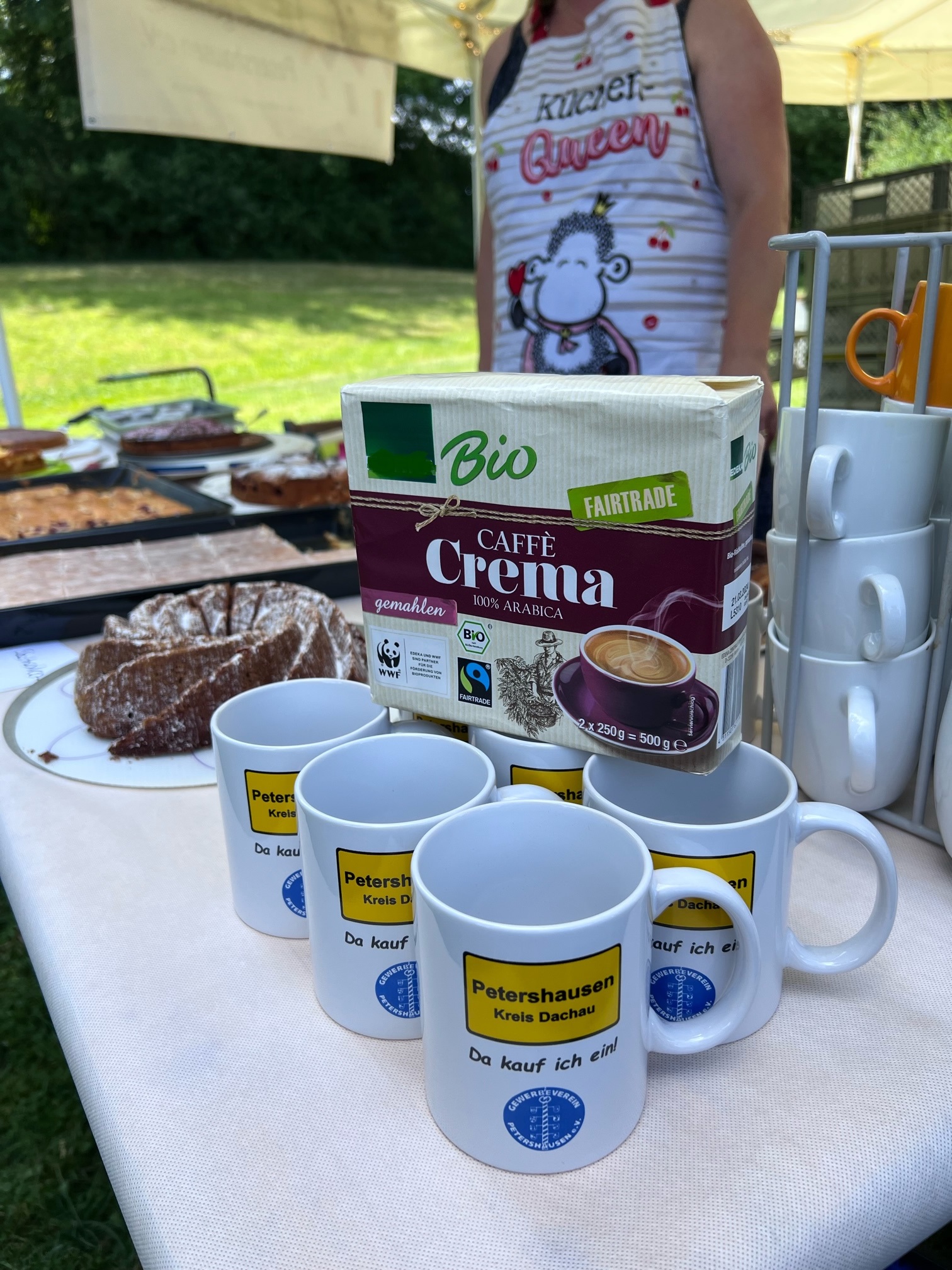 Mehr als 300 Besucher kamen zu dem Fest, das die Siedlergemeinschaft Petershausen am 8.7. 23 auf der Mooswiese ausgerichtete. Die Kinder konnten auf zwei Kamelen und drei Ponys reiten, auf einer Hüpfburg hüpfen und einer Wasserrutschbahn rutschen. Auch das kulinarische Vergnügen kam nicht zu kurz: Es gab Grillwürste und Burger, zehn verschiedene Kuchen, Bier und Limo und fair gehandelter Kaffee im Ausschank. Dieser schmeckte besonders gut in den Tassen vom Gewerbeverein mit dem Slogan „Petershausen, Kreis Dachau-Da kauf ich ein!“